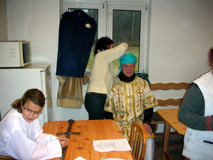 ... kde ho již očekává král Herodes Veliký ( Karel Carva ) a jeho manželka, královna Miriamme ( Danča Koudelková ). Po své levici mají znalce Zákona ( Ota Sucharda ), po pravici kata ( Pavel Koubek ).